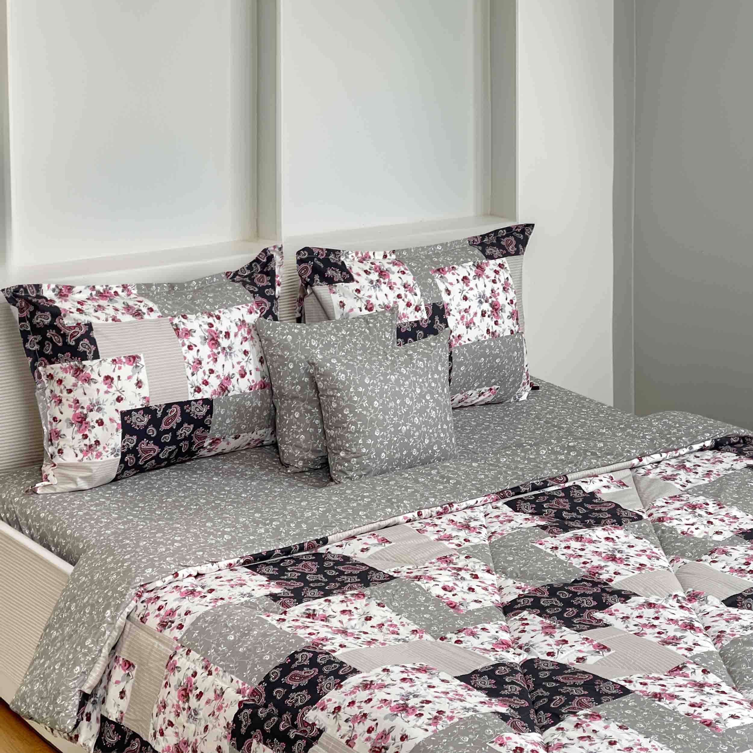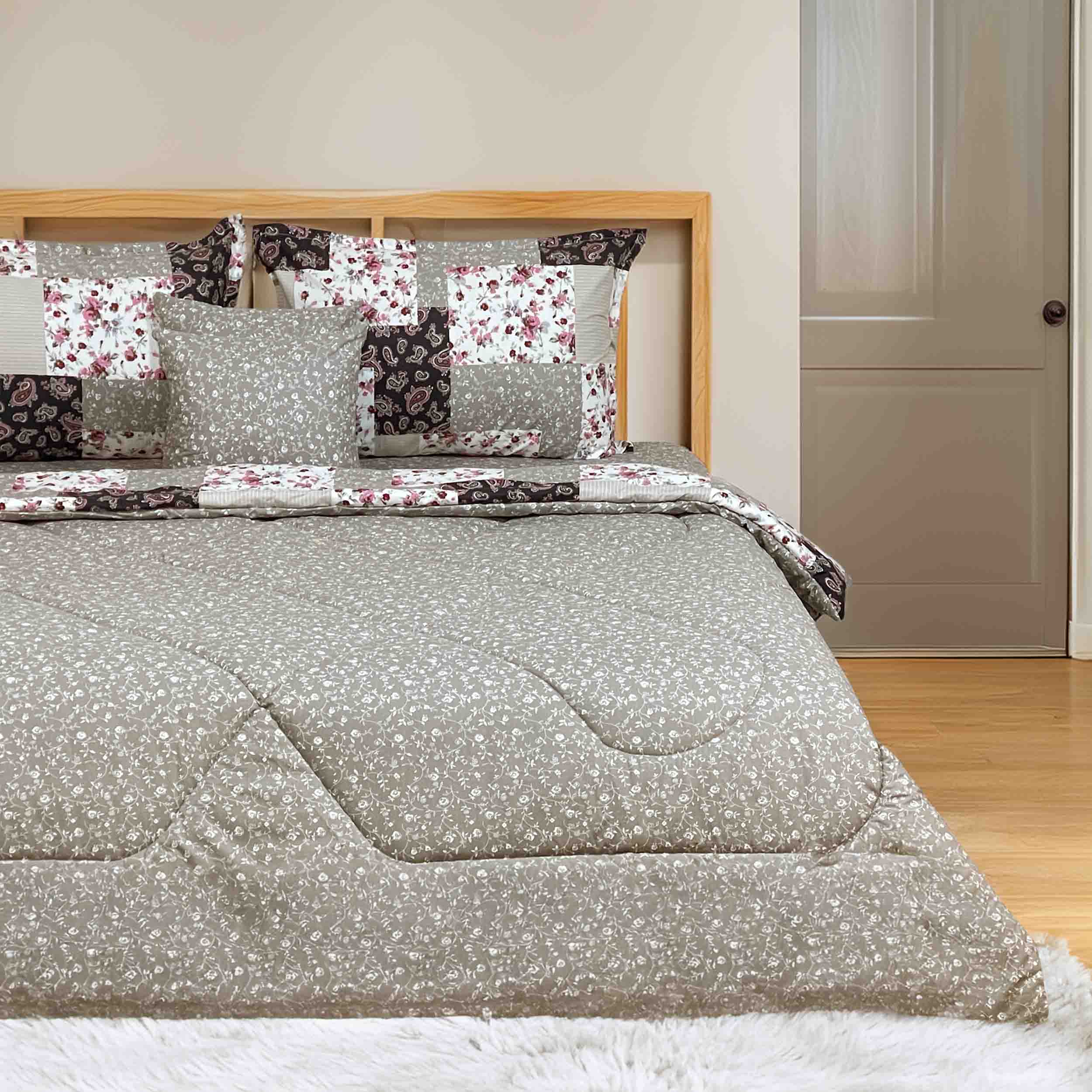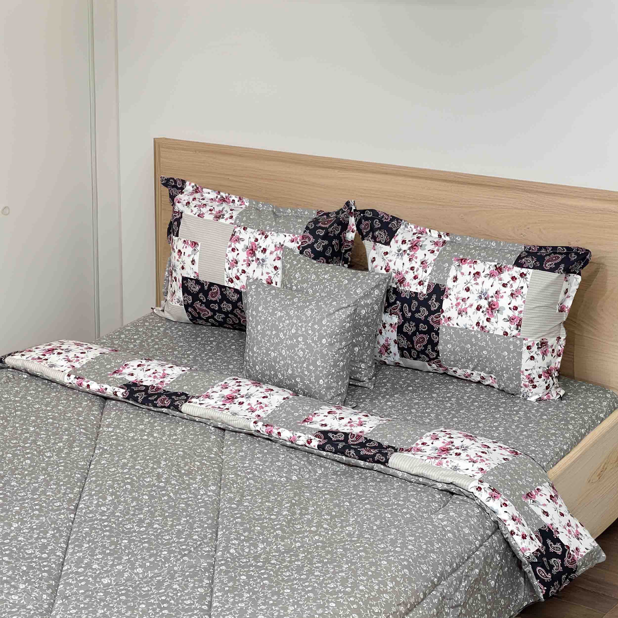 سرویس خواب مانیکاهوم پلی‌کتان مدل چهل‌تیکه طوسی یکنفره چهار تکه